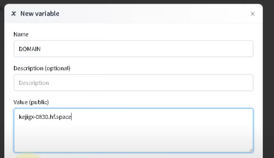 UUID填写自己的ID,然后继续添加变量,复制:DOMAIN,填写自己的域名,然后保存,等到running。